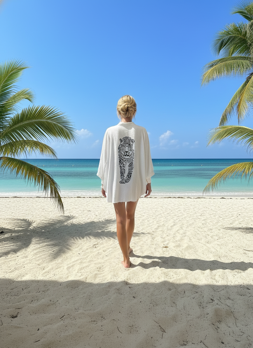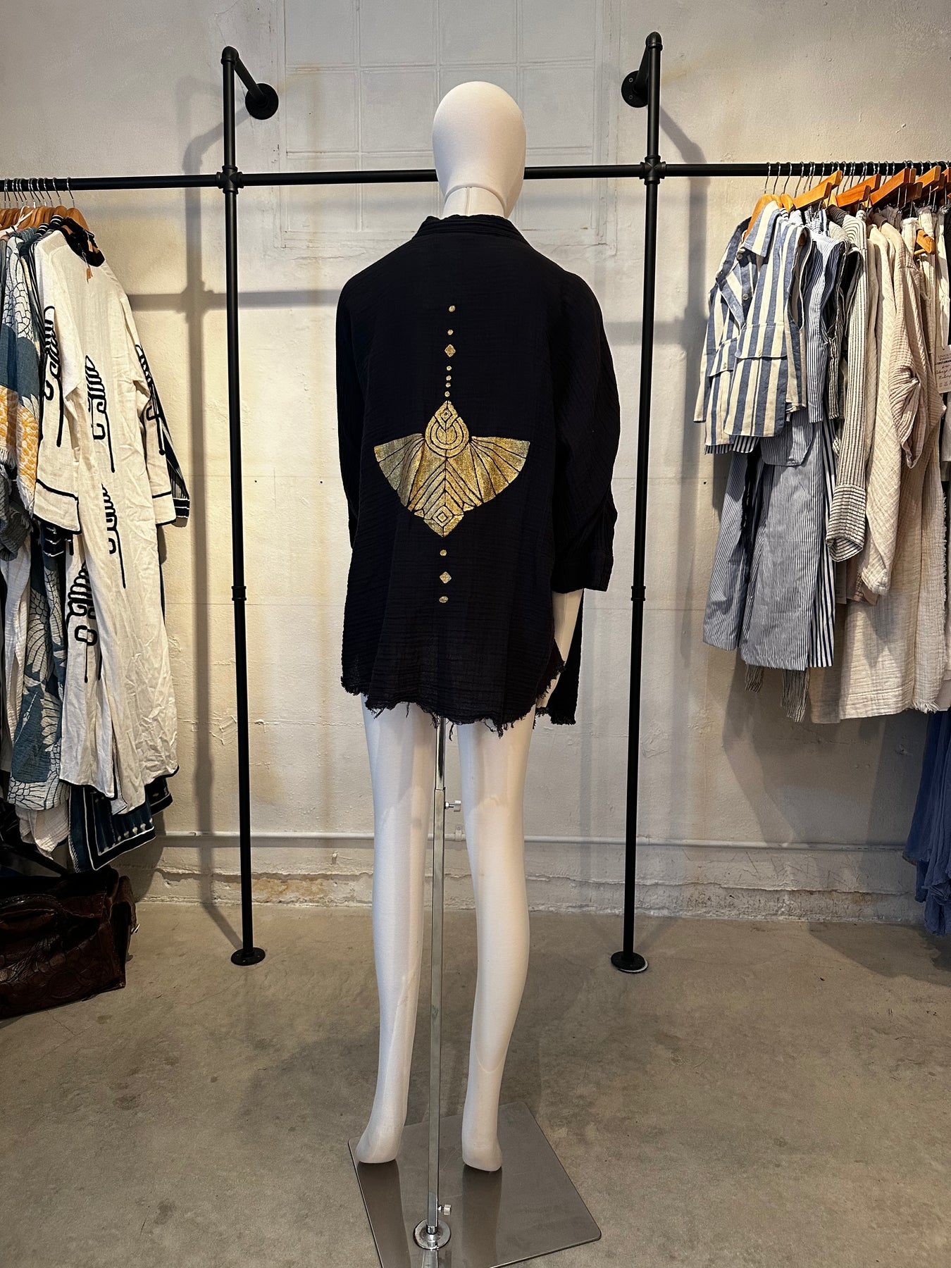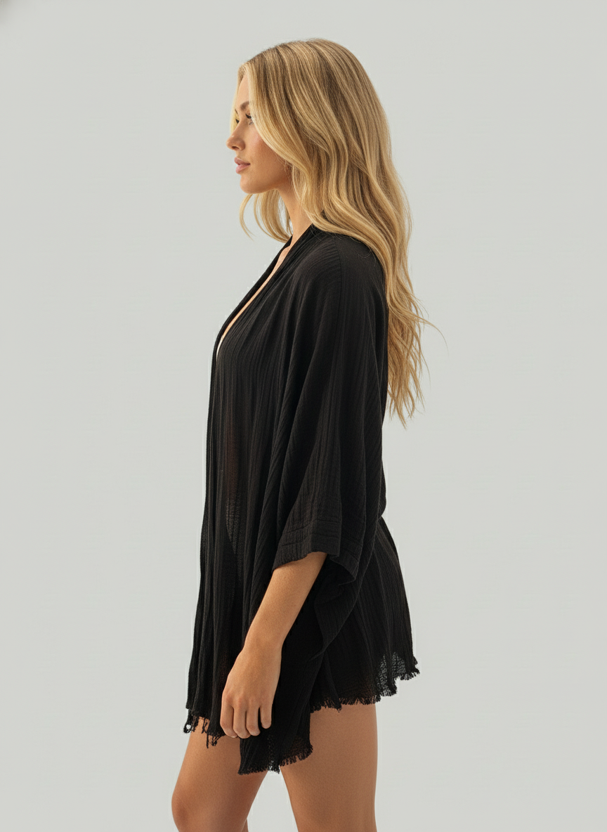 Hand Painted Crinkle Cotton Frayed Cardigan.