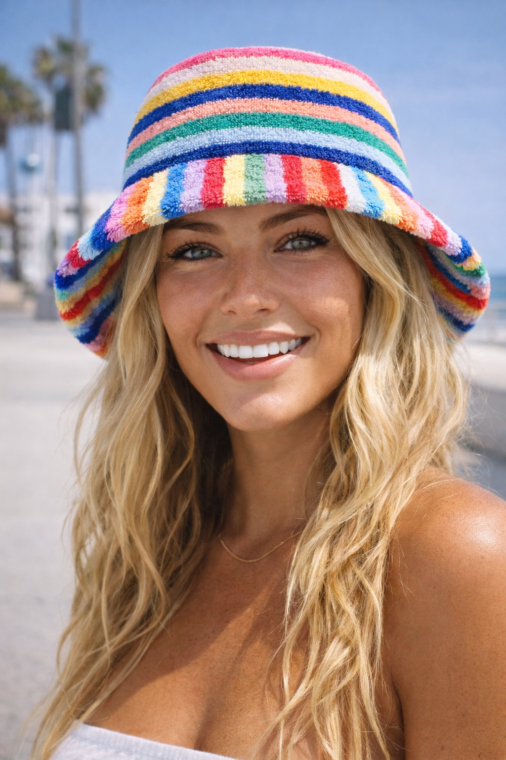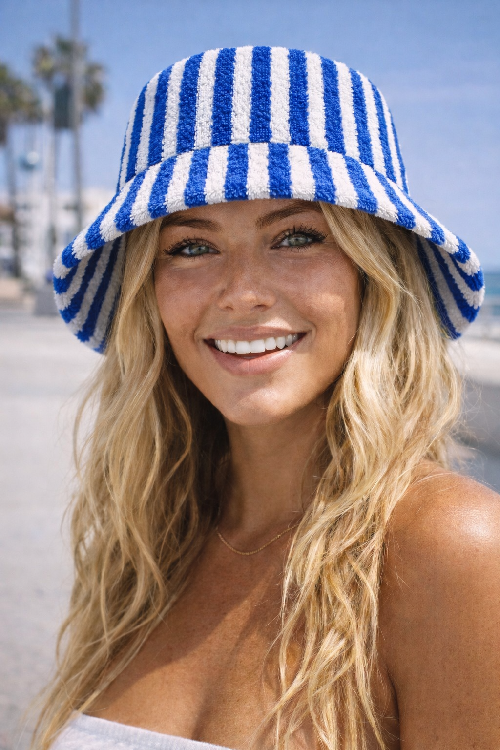 Our Terry Bucket Hat is designed for long beach days, boardwalk strolls, and golden-hour escapes. Made from plush terry cloth, it offers a soft, breathable feel while providing relaxed sun coverage with an easy, laid-back silhouette.